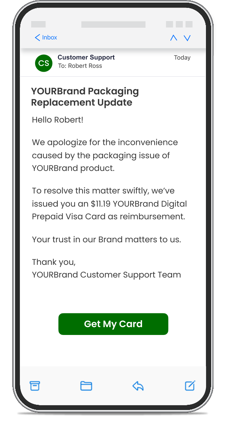 Consumer is directed to a branded landing page maintaining your brand identity during critical recall moments